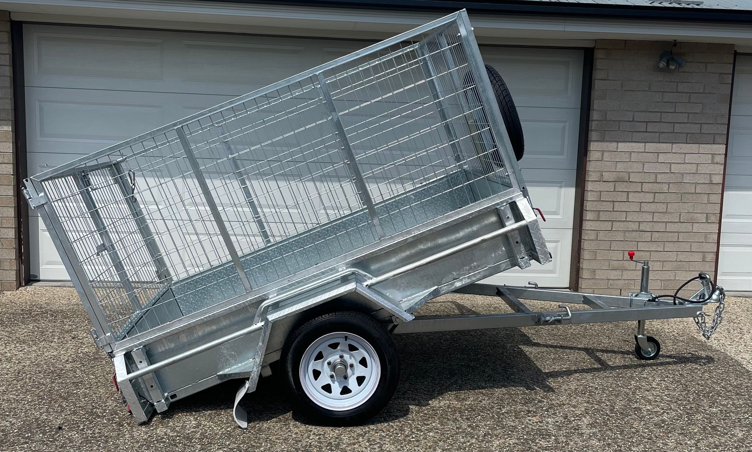 750KG ATM * QUICK TILT * 300mm HIGH SIDES * 900mm HIGH CAGE * REMOVABLE GATES, FRONT AND REAR * TIE DOWN RAILS ALL AROUND * JOCKEY WHEEL * SPARE WHEEL * L.E.D LIGHTS * FLAT/ROUND 7PIN PLUG